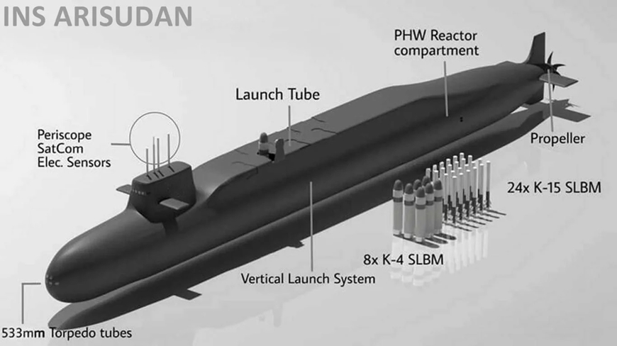 Hindustan Times đưa tin, Ấn Độ đang chuẩn bị đưa vào biên chế tàu ngầm tên lửa đạn đạo chạy bằng năng lượng hạt nhân (SSBN) thứ tư và cũng là chiếc cuối cùng thuộc lớp Arihant, hiện được định danh là S4*, vào khoảng năm 2027. Con tàu dự kiến mang tên INS Arisudan, đã được hạ thủy tại Trung tâm Đóng tàu ở Visakhapatnam vào tháng 10-2024 và đang tiến hành các đợt chạy thử trên biển. Việc S4* gia nhập hải quân sẽ hoàn tất thế hệ đầu tiên của hạm đội SSBN do Ấn Độ tự phát triển và chế tạo.