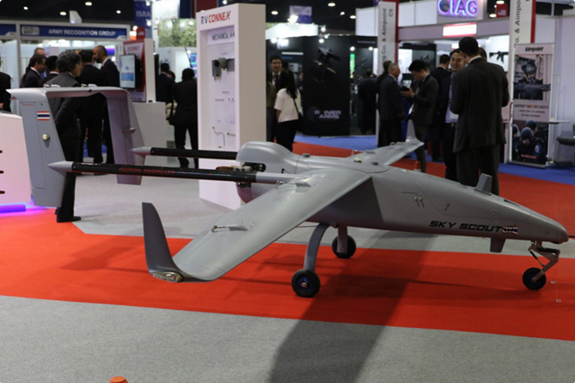 Mô hình UAV Sky Scout-X trưng bày tại triển lãm Defense & Security 2019. |