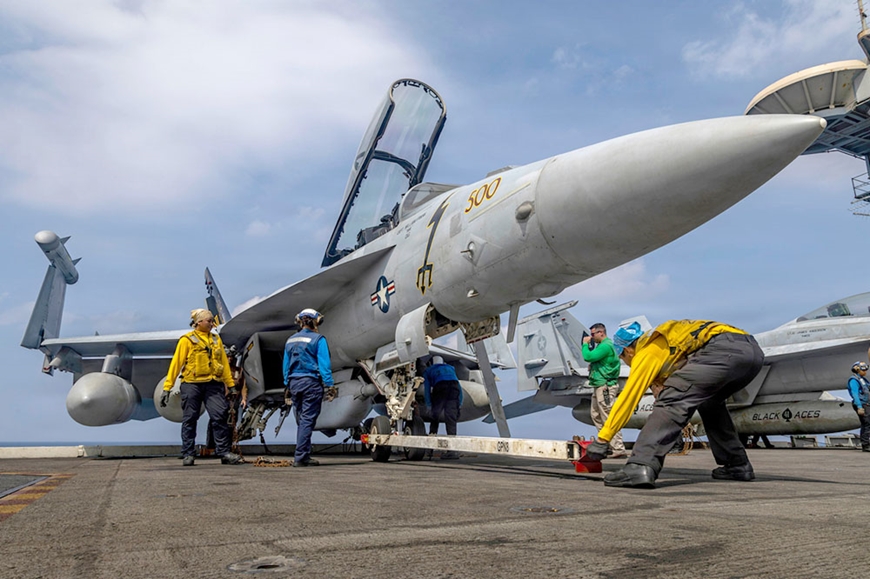 | Các thủy thủ và máy bay Boeing EA-18G Growler trên tàu sân bay USS Abraham Lincoln của Mỹ. Ảnh: The Korea Herald |