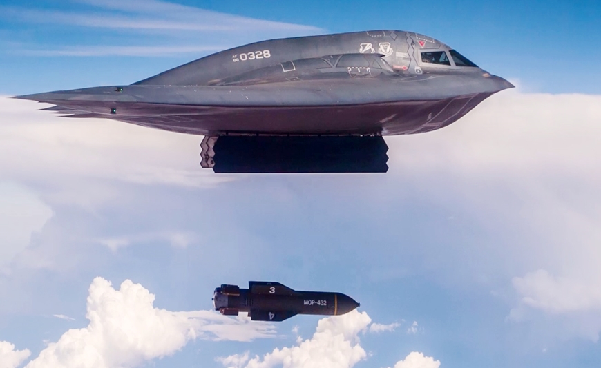 Tháng 6-2025, quân đội Mỹ sử dụng 7 máy bay B-2 Spirit thực hiện một phi vụ kéo dài 37 giờ, thả tổng cộng 14 quả bom xuyên phá GBU-57 MOP tấn công vào các cơ sở hạt nhân ở Iran. Các hình ảnh vệ tinh thương mại cho thấy cuộc tấn công của Washington nhằm vào cơ sở Fordow gây thiệt hại nghiêm trọng và có khả năng đã phá hủy hoàn toàn địa điểm này. Tuy nhiên, mức độ thiệt hại cho đến nay vẫn chưa được xác nhận.