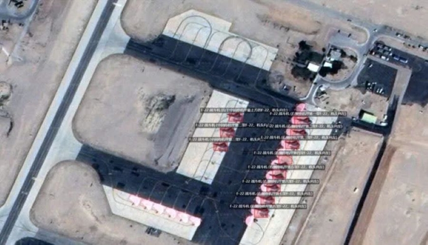 | Hình ảnh chụp vệ tinh của các máy bay F-22 đang triển khai tại Israel. Ảnh: Topwar |