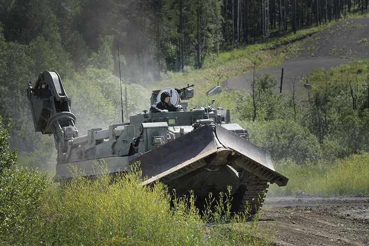 QĐND Online - Tại Diễn đàn kỹ thuật-quân sự Army-2018 đang diễn ra tại ngoại ô Moscow, lực lượng công binh Nga đã giới thiệu hơn 60 mẫu vũ khí hiện đại. Sản phẩm quân sự mới nhất trong số đó là xe công binh bọc thép đa năng (UBIM), có khả năng mở đường cho các lực lượng băng qua bãi mìn của đối phương.