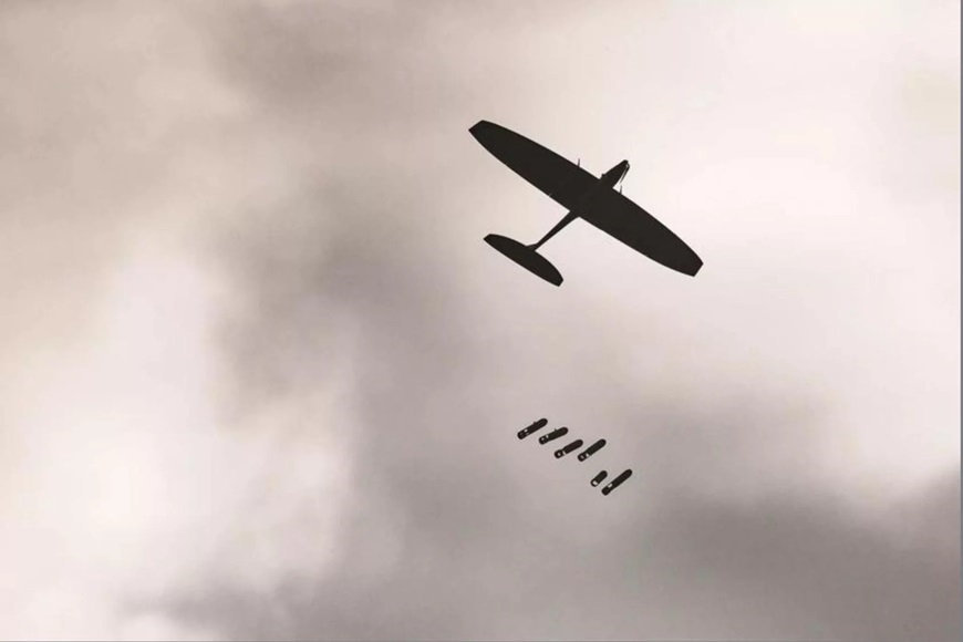 UAV REX thả loạt 6 quả đạn trong cuộc thử nghiệm vào tháng 8. Ảnh: Armadrone