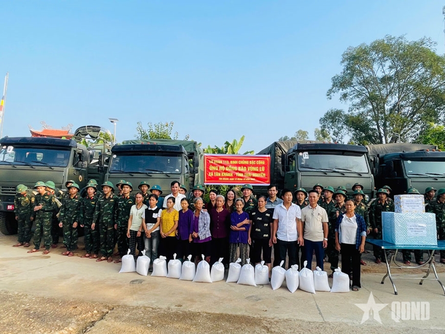 Chia sẻ với nhân dân vùng lũ ở xã Tân Khánh (tỉnh Thái Nguyên), từ ngày 9 đến 12-10, Đảng ủy, chỉ huy Lữ đoàn Đặc công Bộ 113 (Binh chủng Đặc công) đã huy động gần 80 cán bộ, chiến sĩ với 150 ngày công giúp nhân dân san gạt gần 380m3 bùn đất, rác thải; sửa chữa 2,5km đường giao thông, kênh mương và vận chuyển hàng chục tấn lương thực, sản phẩm nông nghiệp, gia súc, gia cầm đến nơi an toàn.