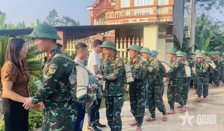 Cán bộ, chiến sĩ Lữ đoàn Đặc công 113 lưu luyến chia tay nhân dân xã Tân Khánh, tỉnh Thái Nguyên. |