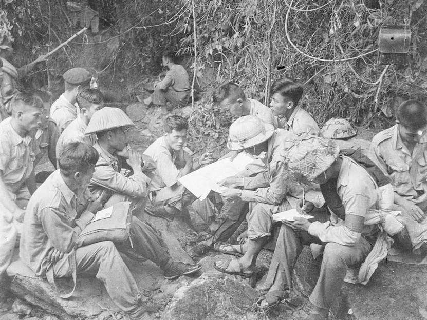| Phút nghỉ ngơi của bộ đội ta giữa hai trận đánh trong Chiến dịch Biên giới năm 1950. Ảnh tư liệu |