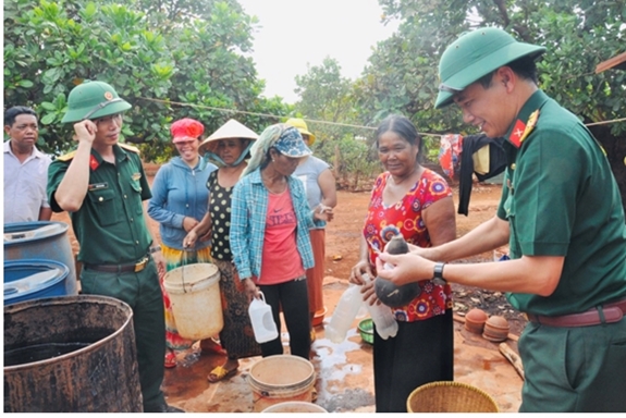 Công ty 72 vận chuyển nước sạch cung cấp cho bà con địa phương. |