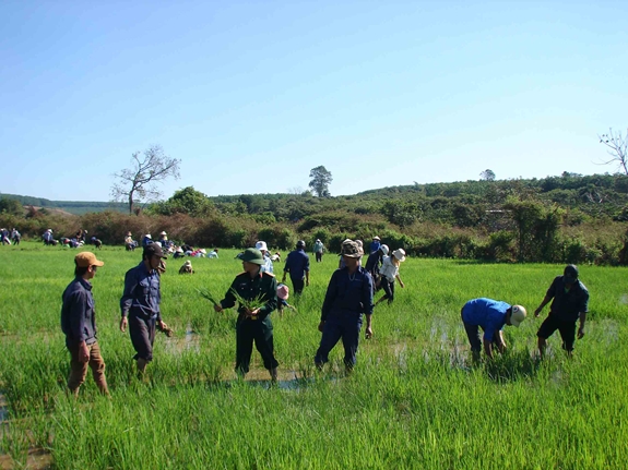 Công ty 72 khai hoang đất, hướng dẫn người dân trồng lúa nước. |