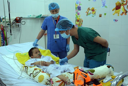 Trao đổi với các chuyên gia y tế, chúng tôi được biết, để bệnh nhân tăng cân, nâng cao thể lực, đủ sức cho ca phẫu thuật, không có cách nào khác ngoài phương pháp tăng cường dinh dưỡng qua đường ăn uống. Đây là nhiệm vụ rất khó khăn bởi cháu Bình còn nhỏ và lại mắc bệnh phổi mãn tính, khả năng ăn uống đã khó, hấp thụ được vào cơ thể còn khó hơn.