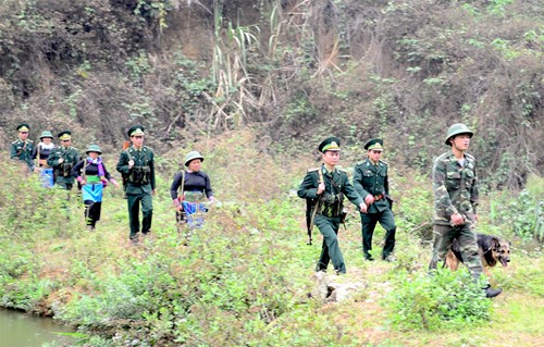 Đồn Biên phòng A Mú Sung, Bô%3ḅ Chỉ huy BĐBP tỉnh Lào Cai phối hợp với dân quân địa phương tuần tra biên giới.