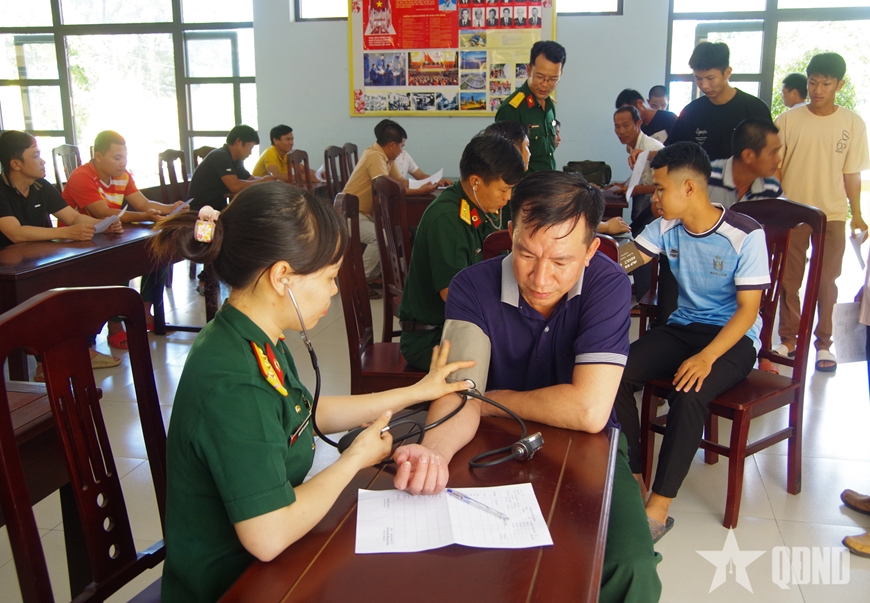 | Sư đoàn 7 kiểm tra sức khỏe cho quân nhân dự bị tập trung huấn luyện. |
