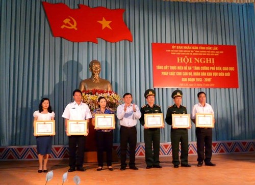 Tại hội nghị, UBND tỉnh Đắk Lắk tặng Bằng khen cho 3 tập thể, 4 cá nhân có nhiều thành tích trong công tác phổ biến, giáo dục pháp luật cho cán bộ và nhân dân khu vực biên giới giai đoạn 2013-2016.
