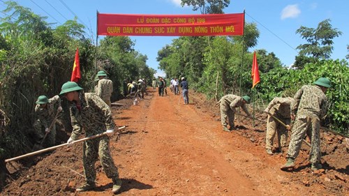 Bộ đội Lữ đoàn Đặc công 198 giúp địa phương xây dựng nông thôn mới tại xã Ea Yiêng, huyện Krông Pách, Đắc Lắc.