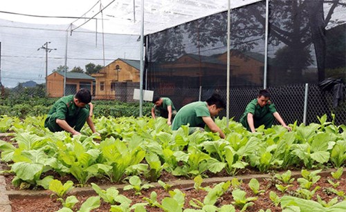 Dẫn chúng tôi đi tham quan khu tăng gia, Thiếu tá Phạm Văn Hoan, Chính trị viên phó Đồn Biên phòng Quang Long, giới thiệu: Đồn đã ra nghị quyết chuyên đề về công tác TGSX, đưa nội dung TGSX vào nghị quyết lãnh đạo thường xuyên của Đảng bộ; có kế hoạch công tác năm, giao chỉ tiêu đến từng bộ phận, cá nhân trong đơn vị. Để trồng được rau, đơn vị đã huy động công sức bộ đội bóc lớp đất đá và vận chuyển đất màu từ nơi khác về để cải tạo đất, tổ chức làm nhà lưới ngăn ngừa sâu bọ, đồng thời thiết kế giàn phun tưới tự động để giảm công sức bộ đội. Cùng với đó, cán bộ, chiến sĩ của đồn chủ động học tập kỹ thuật, kinh nghiệm của các cơ quan, đơn vị trong gieo trồng, chăm sóc, bảo quản, sử dụng các sản phẩm tăng gia. Bên cạnh nỗ lực cải tạo đất, biến đất đồi núi, sỏi đá thành khu TGSX tập trung, đơn vị còn chú trọng xây dựng hệ thống chuồng trại, đa dạng hóa vật nuôi như gà, lợn, thỏ... để nâng cao năng suất, chất lượng.