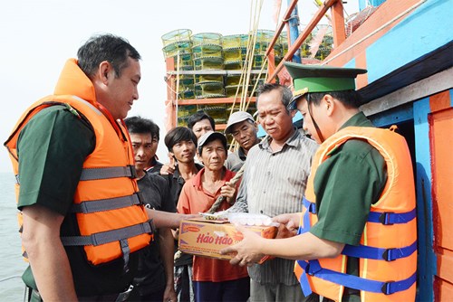 Bộ đội Biên phòng tỉnh Bà Rịa-Vũng Tàu tặng quà ngư dân bị nạn trên biển.