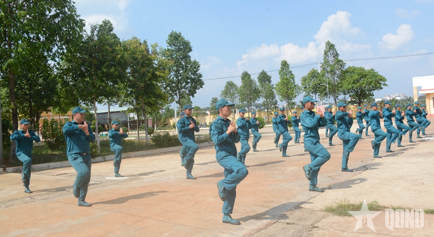 Chiến sĩ dân quân thường trực các xã biên giới tỉnh Đồng Nai luyện tập võ thuật.