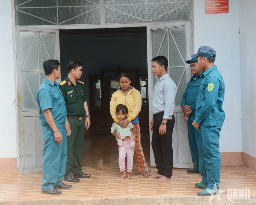 Cán bộ, chiến sĩ tỉnh Đồng Nai thăm hỏi gia đình ở điểm dân cư biên giới xã Lộc Thạnh, tỉnh Đồng Nai.