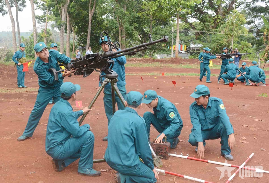 | Tự vệ tỉnh Đồng Nai luyện tập sử dụng vũ khí súng máy phòng không 12,7mm. |