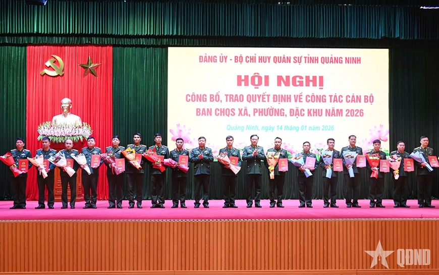 Thường vụ Đảng ủy Quân sự tỉnh đã tổ chức trao quyết định đối với 54 đồng chí cán bộ giữ chức vụ Chỉ huy trưởng Ban CHQS xã, phường, đặc khu. Đây là những cán bộ cơ bản đang đảm nhiệm các chức vụ Phó chỉ huy trưởng, Phó tham mưu trưởng Ban Chỉ huy phòng thủ khu vực, Trung đoàn; Trưởng ban các cơ quan Bộ CHQS tỉnh; cán bộ đã kinh qua cương vị chỉ huy tiểu đoàn. Các đồng chí đều có bản lĩnh chính trị vững vàng, được đào tạo cơ bản, có quá trình rèn luyện, thử thách qua thực tiễn công tác, luôn gương mẫu, chấp hành nghiêm nền nếp chính quy, kỷ luật, hoàn thành tốt nhiệm vụ được giao.
