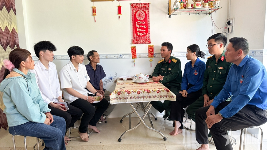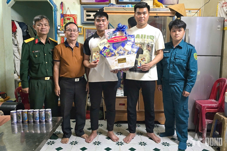 | Đại diện Ban CHQS phường, Đoàn phường Nam Nha Trang thăm hỏi, động viên gia đình và thanh niên nhập ngũ. |