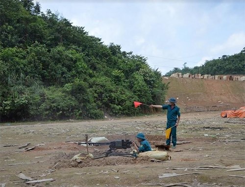 Dân quân Bắc Kạn thực hành bắn mục tiêu mặt đất bằng súng máy 12,7mm.
