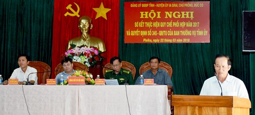 Trong năm qua, Đảng ủy BĐBP tỉnh Gia Lai và Huyện ủy 3 huyện biên giới Chư Prông, Đức Cơ, Ia Grai (tỉnh Gia Lai) đã phối hợp lãnh đạo, quán triệt, tổ chức thực hiện nghiêm túc có hiệu quả các nghị quyết, chỉ thị của Đảng, pháp luật Nhà nước về nhiệm vụ xây dựng và bảo vệ chủ quyền an ninh biên giới quốc gia; xây dựng khu vực biên giới ổn định và phát triển. Phối hợp lãnh đạo, chỉ đạo các đồn biên phòng và xã biên giới triển khai toàn diện nhiệm vụ phát triển kinh tế, xã hội, củng cố thực lực chính trị, tiềm lực quốc phòng, an ninh trong khu vực biên giới.