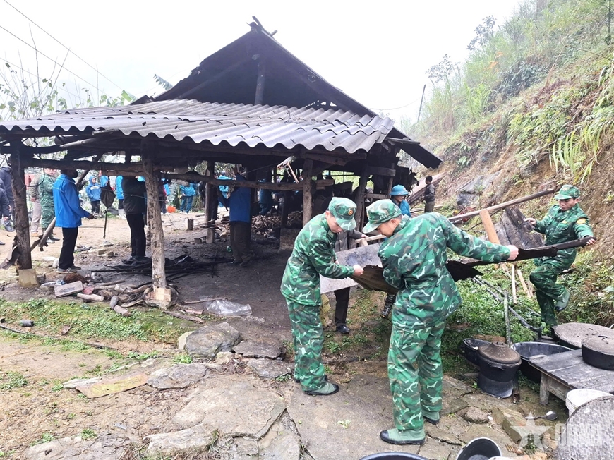 | Bên cạnh nhiệm vụ tuần tra, bảo vệ biên giới, tuổi trẻ Bộ đội Biên phòng tỉnh Tuyên Quang tích cực giúp nhân dân sửa chữa nhà cửa, khắc phục hậu quả thiên tai. |