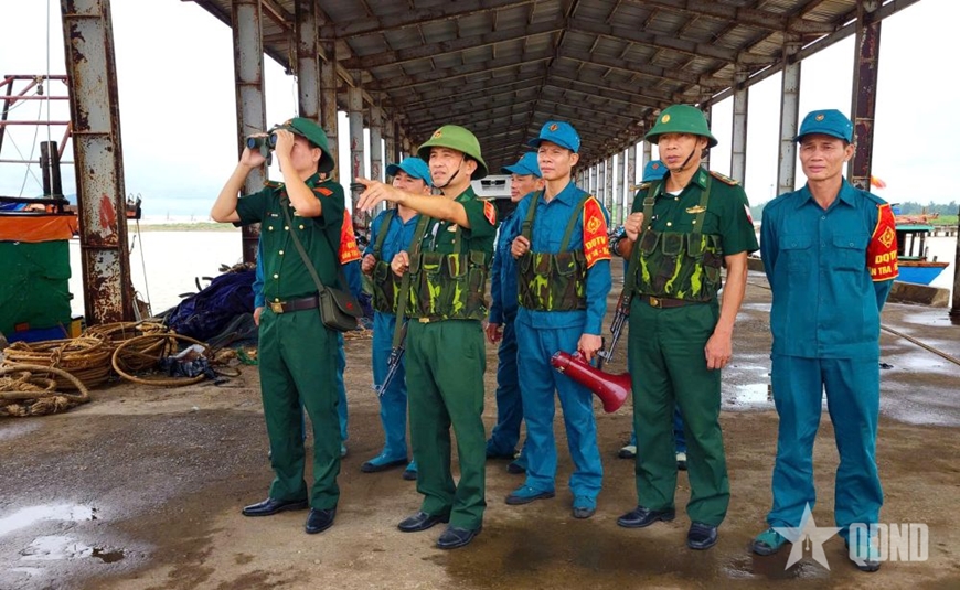 Lực lượng dân quân xã Đan Hải (Hà Tĩnh) phối hợp với Đồn Biên phòng Lạch Kèn tuần tra, bảo đảm an ninh trật tự tại cảng cá Xuân Hội.