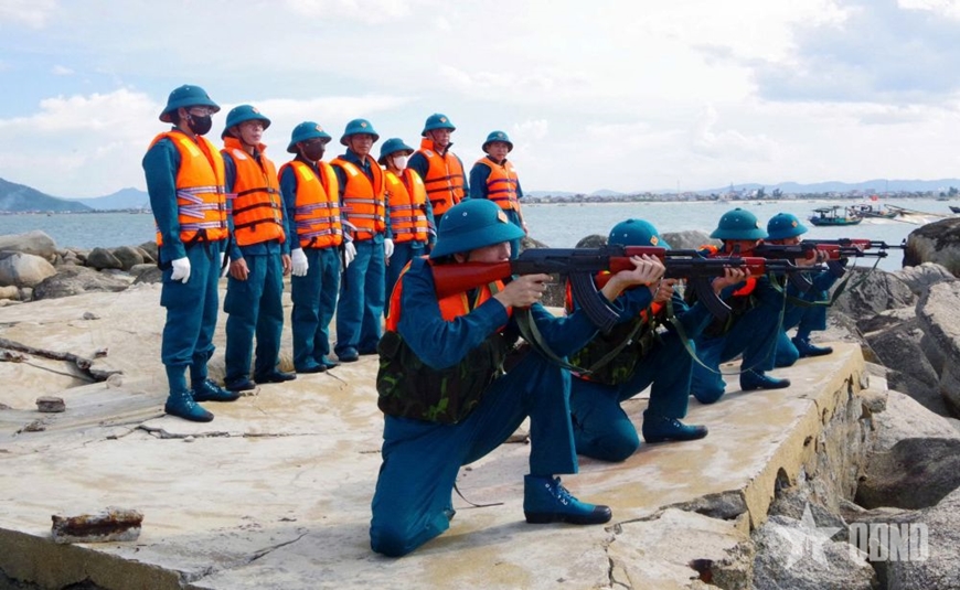 | Dân quân biển xã Thiên Cầm (Hà Tĩnh) tổ chức huấn luyện, nâng cao trình độ, kỹ năng xử lý các tình huống trên biển. |