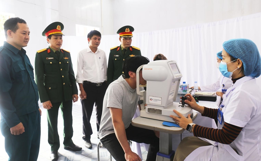 | Lãnh đạo, chỉ huy Ban chỉ huy PTKV 3-Lê Thanh Nghị theo dõi, giám sát quá trình khám sức khỏe NVQS tại xã Bình Giang (TP Hải Phòng). |