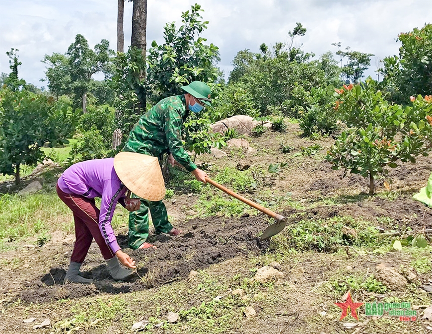 | Đảng viên Đồn Biên phòng Ia Nan giúp nhân dân làm rẫy . |