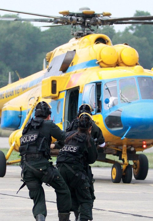 Lực lượng cảnh sát đặc nhiệm, chống khủng bố tham gia diễn tập đổ bộ đường không.
