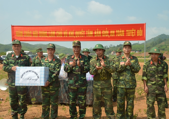 Chỉ huy Sư đoàn 306 trao quà tặng các đơn vị dự bị động viên bắn giỏi năm 2020. Ảnh: ĐÌNH MINH.