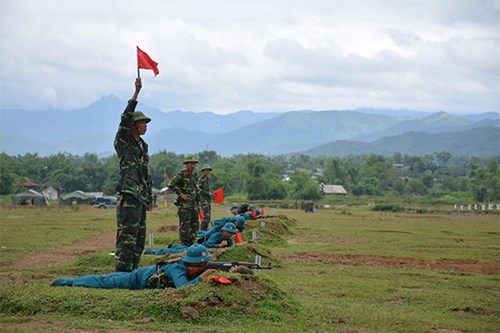 Lực lượng dân quân tự vệ TP Điện Biên Phủ, tỉnh Điện Biên kiểm tra bắn đạn thật. |