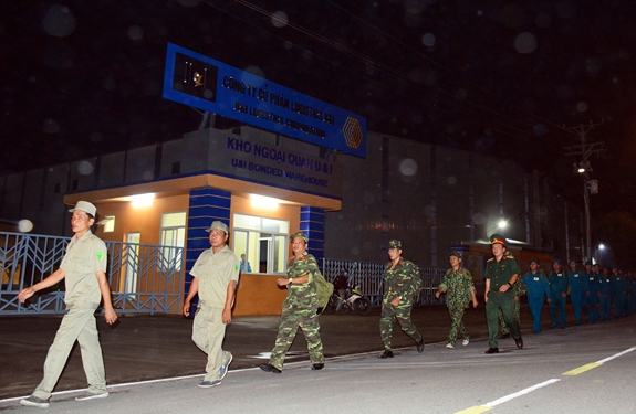 Chỉ huy các đơn vị, bộ phận nhanh chóng kiểm tra quân số, tác phong, mang mặc, trang bị của cán bộ, chiến sĩ sẵn sàng cơ động thực hiện nhiệm vụ. Đợt hành quân này còn có sự tham gia của đông đảo cán bộ, chiến sĩ Đại đội Tự vệ của Công ty Cổ phần KCN Nam Tân Uyên. Đến giờ hiệp đồng, Ban CHQS thị xã Tân Uyên hạ đạt mệnh lệnh hành quân, phân công nhiệm vụ các bộ phận, chỉ huy các lực lượng xuất phát. Tuy không phải tổ chức hành quân của một đơn vị chính quy trong quản lý bộ đội nhưng theo quan sát của chúng tôi, trong quá trình hành quân trên những tuyến đường của khu công nghiệp, từng người đã nêu cao ý thức trách nhiệm, chấp hành nghiêm mệnh lệnh của người chỉ huy, quy định giãn cách, cảnh giới, sẵn sàng hỗ trợ nhau giữa các bộ phận.