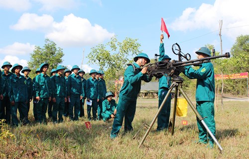 Đơn vị dân quân thuộc Ban CHQS huyện Hàm Thuận Nam luyện tập bắn mục tiêu trên không.