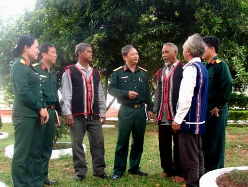 Cán bộ Công ty 74 (Binh đoàn 15) trao đổi kinh nghiệm sản xuất, bảo vệ an toàn xã hội với các già làng ở Đức Cơ-Gia Lai.
