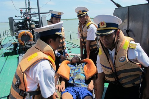 Cán bộ, chiến sĩ Tàu 211, Hải đội 137 (Bộ tư lệnh Vùng 1 Hải quân) luyện tập cứu hộ người bị nạn trên biển.