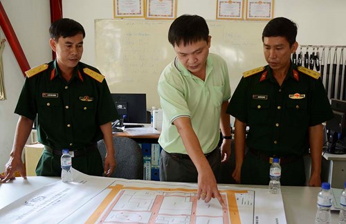 Đồng chí Nguyễn Duy Hải, Trung đội trưởng Trung đội tự vệ Công ty TNHH Hualon Corporation Việt Nam, báo cáo phương án chiến đấu tại chỗ bảo vệ công ty với đại diện Ban Chỉ huy quân sự huyện Nhơn Trạch.