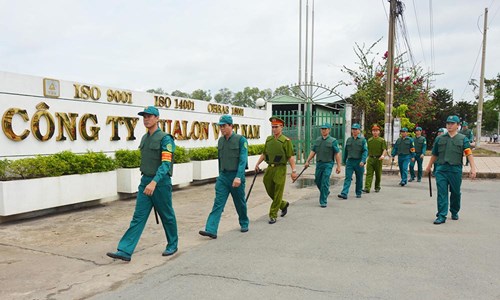 Để nâng cao hiệu quả thực hiện nhiệm vụ, Tự vệ Công ty TNHH Hualon Corporation Việt Nam thường xuyên phối hợp với công an tuần tra bảo đảm an toàn cho công ty.