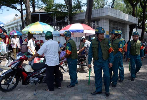 Ngoài làm nhiệm vụ bảo vệ chuyên môn, Tự vệ Công ty TNHH Pouchen Việt Nam còn tham gia giải tỏa giao thông giữ gìn trật tự trên địa bàn.