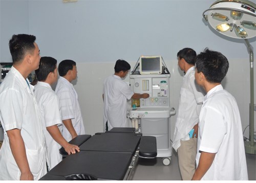 Tập huấn sử dụng các trang thiết bị y tế hiện đại ở Bệnh xá Quân dân y đảo Thổ Chu. Ảnh: Huệ Trụ