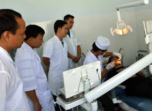 Bệnh nhân được khám, chữa bệnh nha khoa bằng trang thiết bị y tế hiện đại ở Bệnh xá Quân dân y đảo Thổ Chu. Ảnh: Huệ Trụ