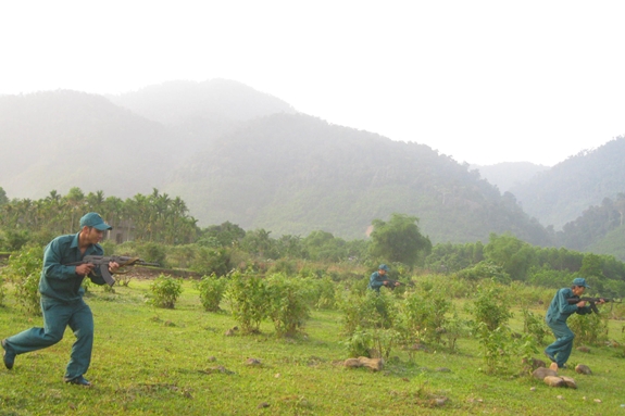 Dân quân xã Thượng Nhật, huyện Nam Đông diễn tập chiến đấu phòng thủ xã năm 2019. |