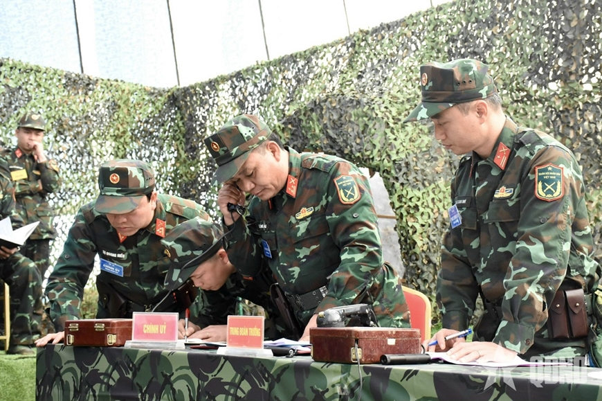 | Chỉ huy Trung đoàn Bộ binh 254 thực hành xử trí tình huống. |