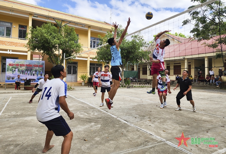 Thi đấu bóng chuyền tại Ngày hội Biên phòng toàn dân năm 2023 của xã Krông Na.
