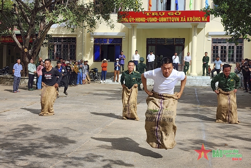 Trước đó, tại xã Krông Na cũng đã diễn ra các hoạt động hưởng ứng Ngày hội Biên phòng toàn dân như: Thi đấu bóng chuyền, kéo co, nhảy bao bố giữa các cơ quan, đơn vị; tổ chức cắt tóc miễn phí cho nhân dân theo mô hình “Tay kéo biên phòng”.