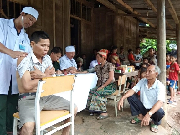 Các y sĩ, bác sĩ Bệnh xá Quân dân y Đoàn Kinh tế-Quốc phòng 4 khám bệnh cho đồng bào huyện Kỳ Sơn (Nghệ An). Ảnh: PHÚC QUANG |