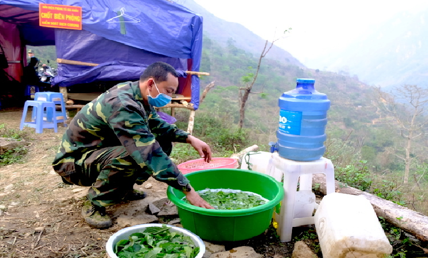 QĐND Online - Canh rau tàu bay, rau lạc tiên xào, củ từ hầm, hoa chuối nộm... là những món "đặc sản" của Bộ đội Biên phòng khi lập chốt, bám biên chống dịch Covid-19.
