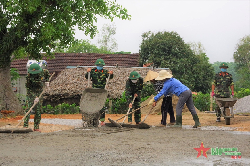 LLVT tỉnh Hà Tĩnh giúp nhân dân xã Phúc Đồng (Hương Khê, Hà Tĩnh) xây dựng nông thôn mới. Ảnh: TRỌNG SƠN